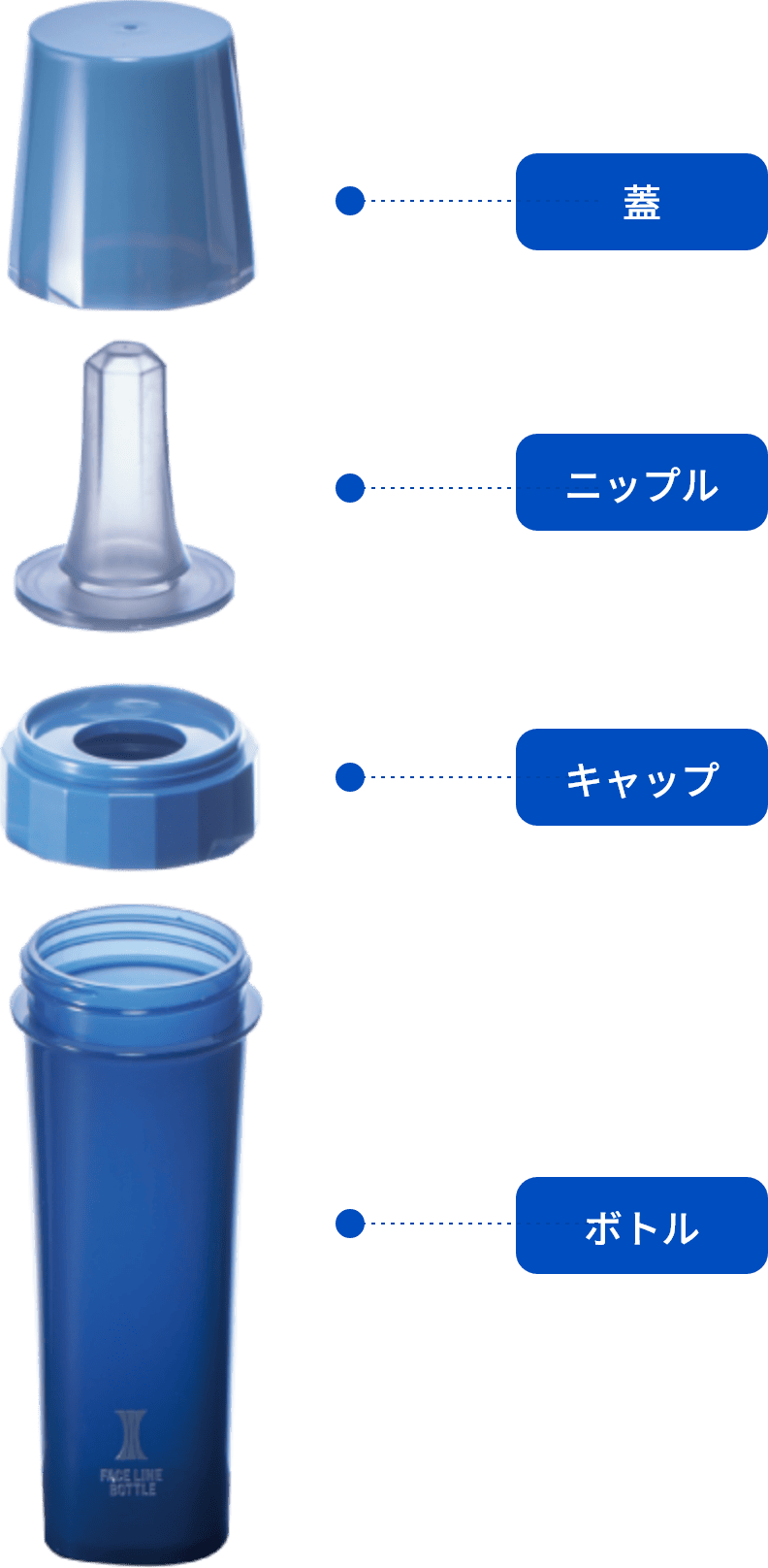 特殊なニップル形状により、舌を上下に動かしながら飲料を飲むことができます。それにより口周りおよび舌から続く喉頭蓋までの筋肉を鍛えます。